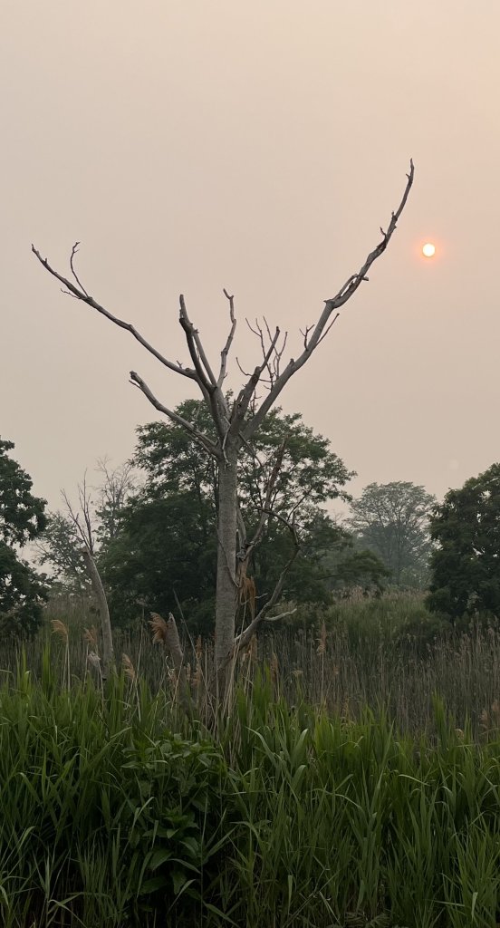 notes… the day when Canadian wildfires threw strength south, surely a strange site this made for a day, a light itch in my eyes and throats as the day progressed, the peak was around 2pm when I could look out my window and see the world as a red dying giant might, or will, someday.