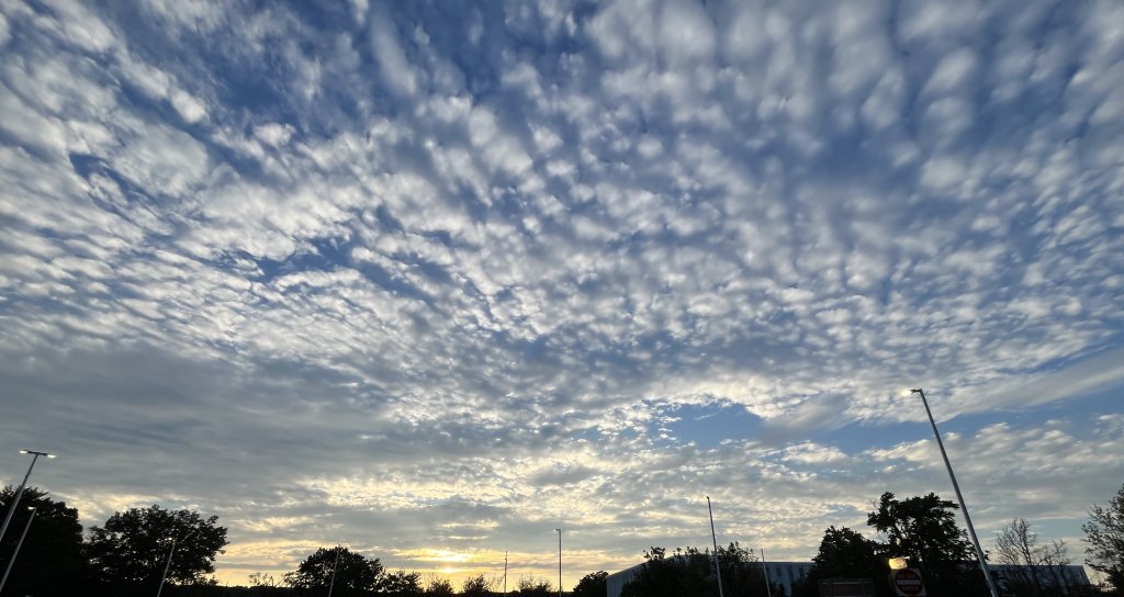 these waking hours, into the dawn, I drive, not such a noble thought, or experience I might share online, but so, as the days draw smaller, my alarms do not falter, and there I am, between a car ride, traffic, and working man, left to see the sunrise, not as a joy, but as to where to aim my visor’s eye, maybe I should pause, and admire, even for a glimpse, the sun peeking out, over the snake bridge, behind the city that towers over the landscape in that direction, and maybe those sun’s rays come beneath my skin, my eyes, my mind, and bathe them in the eternal medicine of a rising sky… for many days may be grey and glum, so inhale in deeply from your souls the days of blue and sun, like today.